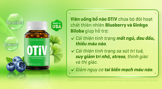 Ngoài xây dựng thói quen sinh hoạt khoa học, tránh các tác nhân làm ảnh hưởng đến giấc ngủ thì cần chủ động bổ sung các dưỡng chất cần thiết cho não bộ. Đặc biệt là các tinh chất quý được chiết xuất theo công nghệ độc quyền, đạt tiêu chuẩn của Mỹ như tinh chất Blueberry và Ginkgo Biloba đã được chứng minh hiệu quả giúp hỗ trợ cải thiện rối loạn giấc ngủ, mất ngủ ở người già về đúng nhịp sinh lý, hạn chế tình trạng khó ngủ trở lại sau khi thức giấc giữa đêm.