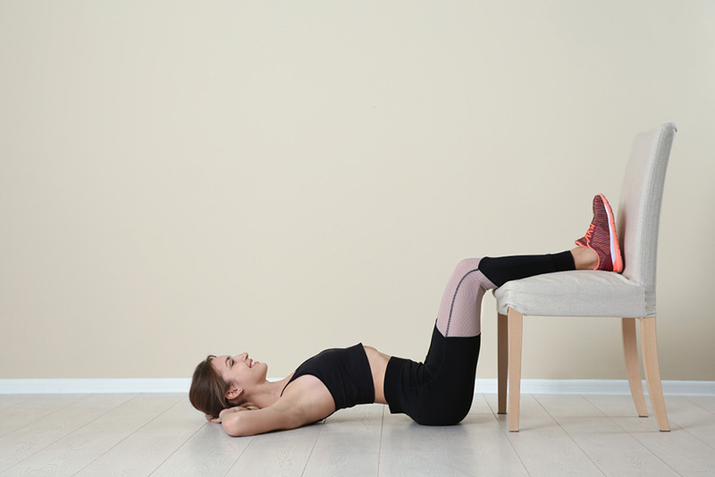 Đặt một chiếc ghế ngay sát vị trí nằm. Đảm bảo ghế ổn định và không bị xê dịch khi bạn đặt chân lên.